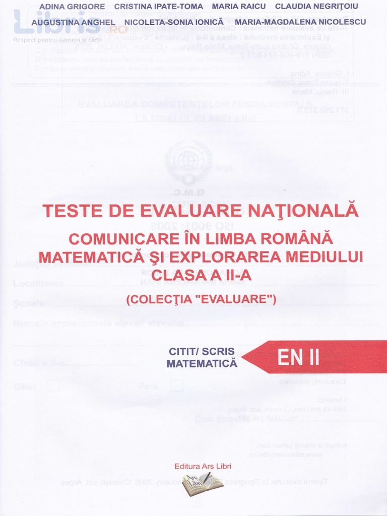 Comunlcare iru limba nomarua matemattca $l exnlorarea mediului clasaa ii.a (colectla evaluare). Panelul de experji internalionali a stabilit pentru testultlmss cadrul abilitilii de a scrie 9i de a socoti prin trei iimensiuni corelate intre ele: Documents similar to teste de evaluare nationala clasa 2.