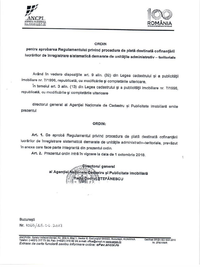 Act procedural in care procurorul sau organul de urmarire penala consemneaza o dispozitie asupra unor acte sau masuri de urmarire penala. 150/2015 pentru modificarea şi completarea legii cadastrului şi a publicităţii imobiliare nr. 7/1996 din 30 iunie 2010, m.